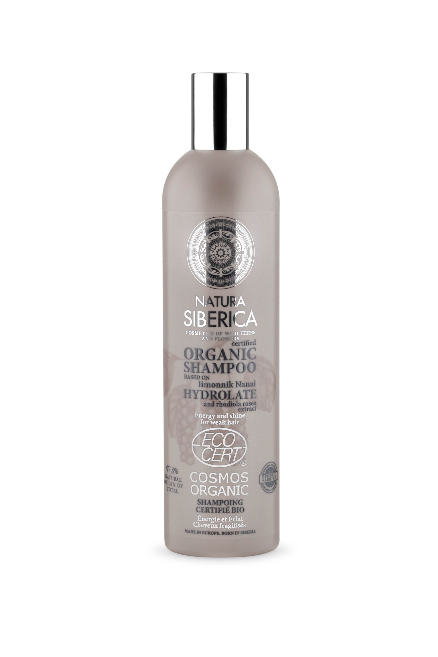 Este champú, basado en hidrolato orgánico de schizandra, limpia el cabello y el cuero cabelludo delicada y minuciosamente mientras le proporciona importantes nutrientes para mantenerlo fuerte y bello. La schizandraes altamente beneficiosa para el cabello débil debido a su efecto antioxidante. También rica en vitamina E y C, nutre e hidrata el cabello para dejarlo suave y brillante. La rodiola contiene rosavina, rosarina y rosina. Estos componentes curativos solo se encuentran concentrados en la rodiola de origen siberiano, donde el clima extremo estimula su producción.