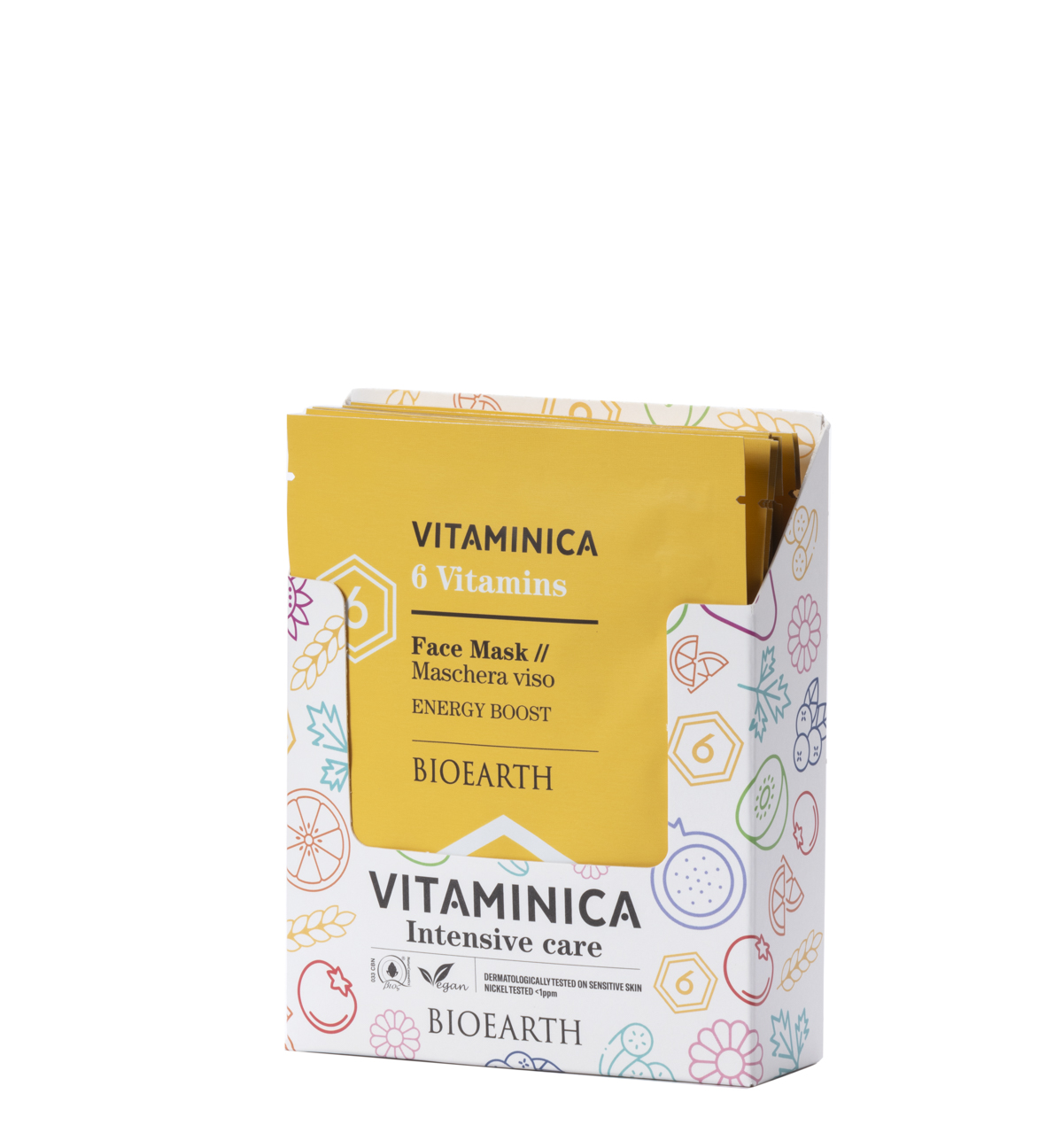 Mascarilla revitalizante con 6 vitaminas esenciales (C, H, E, F, B3, B5) y Aloe vera que hidratan, tonifican y energizan la piel de inmediato. Su fórmula natural y equilibrada aporta frescor y bienestar, devolviendo luminosidad y suavidad al rostro. Ideal para todo tipo de pieles, especialmente aquellas que lucen apagadas o cansadas y necesitan un impulso instantáneo de energía.
